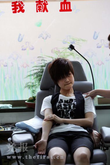 何潔、黃雅莉是約好一起開車到血液中心的,并在車上填完獻(xiàn)血申請表?吹窖褐行木谷挥羞@么多人在獻(xiàn)血,她們也很激動,“不知道這么多人都會來啊,都是為災(zāi)區(qū),感覺很感動!焙螡嵳f:“我以前在四川上學(xué),已經(jīng)問候了那邊的朋友,他們都很平安。今天是我第一次獻(xiàn)血,感覺還好吧!蓖瑏淼狞S雅莉雖然緊張,但還是很期待:“哎,不就是抽點血嘛,抽完了就好啦!痹诼犝f好朋友李宇春也來獻(xiàn)血時,她們很關(guān)心:“春春暈血,她現(xiàn)在沒事吧!辈贿^在進(jìn)入驗血室時,剛剛還一副豁出去樣子的黃雅莉卻像孩子一樣跟公司的工作人員說:“其實我還是有點緊張哈!”但是她在何潔抽血時,卻不停地給同伴鼓勵:“何潔,別緊張,我支持你哦!”