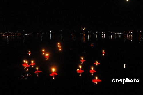 組圖:南陽(yáng)市民放河燈為汶川地震災(zāi)民祈福