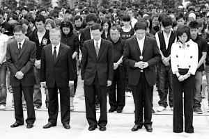 默哀完畢, 抬起頭,人們久久不愿離去,我看到他們眼里的淚花,我亦如此。