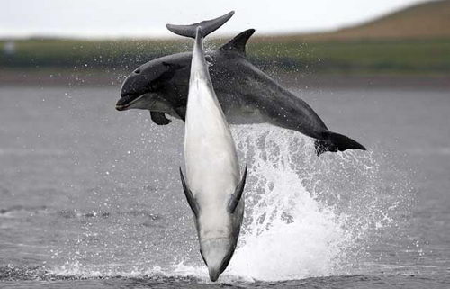 旁觀者在看到瓶鼻海豚跳水嬉游的景象時經(jīng)常會誤認為他們在觀看一場精心設(shè)計的演出,但對于那些在船上近距離觀看海豚的人們來說,海豚跳水嬉游的景象很自然,它們完全是率性而為。那些幸運的游客可以看到三頭海豚在藍色的天空下跳水、海豚捕食鮭魚的跡象。一位乘船觀看海豚的游客稱:“這真是難以置信,我們與它們那么接近,這看起來好像是它們試圖想向我們展示它們的能力。它們動作的協(xié)調(diào)性難以置信,你有時會認為它們會撞到一起。觀看它們捕食鮭魚是一件更棒的事情!