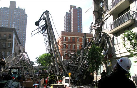 紐約摩天大樓建筑起重機跌落事故現(xiàn)場