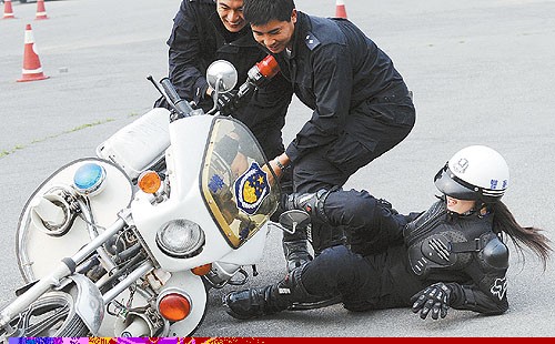 盡管有教練保護(hù),訓(xùn)練初期,女隊(duì)員還是免不了摔跤。