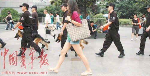 奧運(yùn)會(huì)即將舉辦,突發(fā)事件隨時(shí)可能發(fā)生。為此,上海鐵路警方調(diào)集鐵警精銳進(jìn)駐上海站,并成立了鐵路上海站奧運(yùn)安保前線指揮部。7月以來(lái),鐵路特警全副武裝攜警犬在上海站、車站廣場(chǎng)及與地方接合部晝夜進(jìn)行巡邏檢查。