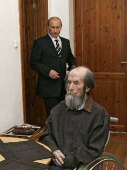 頒獎典禮結(jié)束后,普京還突然決定前往莫斯科郊外的索爾仁尼琴家中拜訪由于健康原因無法去克里姆林宮領(lǐng)獎的作家。普京對他說:“我想特別感謝您為俄羅斯所做的貢獻,直到今天您還在繼續(xù)自己的活動。您對自己的觀點從不動搖,并且終生遵循!(黃頻)