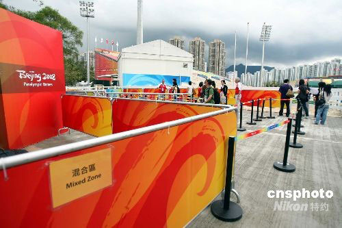 北京2008年殘奧馬術(shù)比賽將在九月七日至十一日在香港舉行。在五天的比賽中,將有七十三名運動員參賽,殘奧馬術(shù)選手村和比賽場地基本沿用奧運馬術(shù)的措施,但為了保障運動員們的安全,部分場館則做出適當(dāng)改動。中新社發(fā) 洪少葵 攝