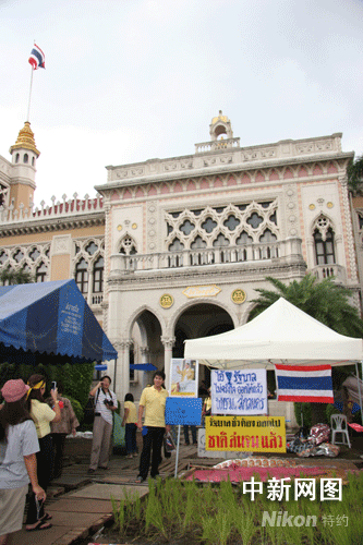 目前,聚集總理府的示威者風雨不停,吃睡全在總理府大院里。