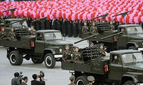 有報(bào)道說,閱兵儀式上出動(dòng)了炮兵團(tuán)、地對(duì)空導(dǎo)彈發(fā)射器以及槍支等武器。朝鮮國(guó)防委員會(huì)副委員長(zhǎng)金永春次帥等軍隊(duì)領(lǐng)導(dǎo)在指揮臺(tái)觀看了長(zhǎng)達(dá)約30分鐘的儀式。閱兵儀式后,由10萬名平壤市民舉行了盛裝游行,大學(xué)生等人進(jìn)行了火把演出。