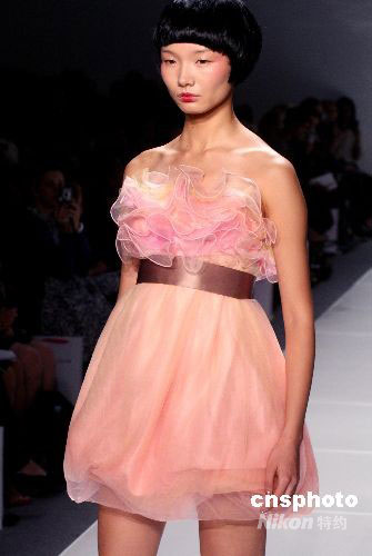 圖為世界名模參加中國女裝設(shè)計師羅崢作品展示。中新社發(fā) 錢興強 攝