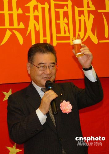 日中友好協(xié)會新任會長、自民黨原干事長加藤紘一舉杯祝愿中日兩國世代友好。