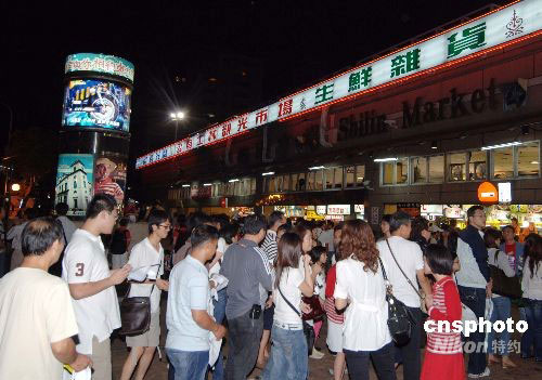 圖:臺(tái)北“士林夜市”生意紅火至夜深