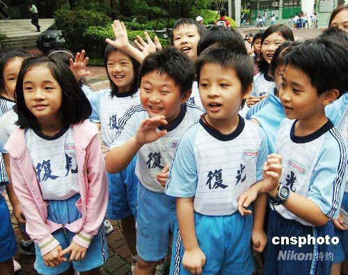 圖:臺北光復(fù)小學(xué)學(xué)生歡迎福建小營員的到訪