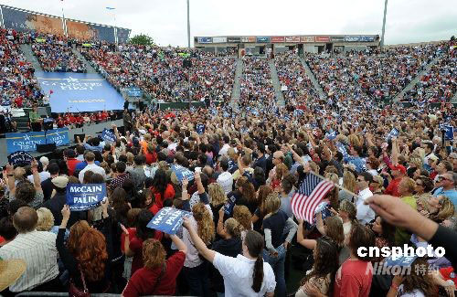 佩林此行目的除了演講造勢,還將參加籌款會為麥凱恩陣營募款。中新社發(fā) 張煒 攝