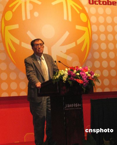 2007年10月3日,中國著名電影導(dǎo)演謝晉出現(xiàn)在上海舉辦的智障人士福利全球政策高峰論壇上。作為智障孩子的父親,謝晉以親身經(jīng)歷力陳特奧運動對智障人士起到的積極作用,他說特奧運動員自強不息的精神讓他深受感動。中新社發(fā) 李佳佳 攝