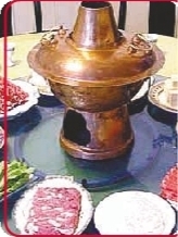 。犚紬l龍經(jīng)營涮羊肉已有220年的歷史,因其一直延續(xù)傳統(tǒng)的銅火鍋吃法,堪稱京城涮羊肉“正宗”,特點(diǎn)有四:一是選肉精,這里的內(nèi)蒙古專供灘羊,粉肉白腰,香而不膻,肉質(zhì)鮮美。二是加工細(xì),選切羊肉時(shí),要先在一層錫箔上放好天然冰,再把羊腿放在冰上碼好,肉上蓋油布,油布上在壓冰,這樣經(jīng)過一天一夜的“壓肉”、“排酸”,切出來的肉片薄,自然打卷,形似刨花,又不失嫩香。肉切好后按黃瓜條、上腦、磨襠、小三叉、大三叉等不同部位裝盤,顧客可根據(jù)喜好選擇。三是作料全,除了辣椒油和醋之外,還有高級醬油、醬豆腐、小磨香油、糖蒜、米酒、酸菜等等。四是主食香,5公斤面要放1公斤芝麻,做出的燒餅多達(dá)18層,烙完后再上爐烘烤,外焦里嫩,香酥適口,加上一碗又細(xì)又勻的綠豆雜面,收盡油膩,那才叫實(shí)實(shí)在在的吃涮羊肉。壹條龍清真涮肉炭火鍋被評為“北京名火鍋”。