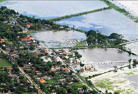 中新網(wǎng)1月28日電 綜合報(bào)道,玻利維亞因連日暴雨導(dǎo)致洪水泛濫,根據(jù)當(dāng)?shù)孛襟w報(bào)道,包括一名意大利人在內(nèi),洪水已經(jīng)造成32人死亡。圖為中南部圣克魯茲26日的鳥瞰圖,一半以上的區(qū)域已被洪水淹沒。
