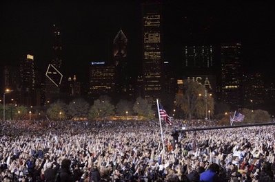 奧巴馬在選舉結(jié)果揭曉以后發(fā)表了以“美國的變革”為主題的獲勝演說。他說,“美國的變革時(shí)代已到來”。