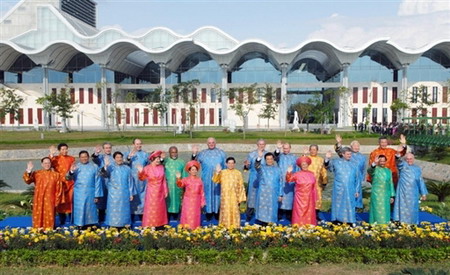 2006年APEC峰會時,領(lǐng)導(dǎo)人們穿上俗稱“奧黛”的越南服飾,女士的衣服看起來很像中國旗袍。