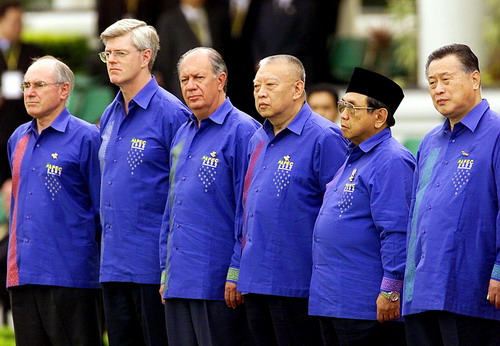 2000年APEC峰會(huì):各領(lǐng)導(dǎo)人穿文萊一種叫"MIB"的襯衫