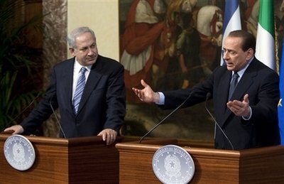 在兩位領(lǐng)導(dǎo)人召開的一場持續(xù)了近兩個(gè)小時(shí)的聯(lián)合記者招待會(huì)上,貝盧斯科尼表示,意方同意內(nèi)塔尼亞胡關(guān)于建立一個(gè)非軍事化的巴勒斯坦國的看法。他表示,意大利贊同“建立這樣的國家”,正如意大利認(rèn)為以色列“應(yīng)獲得阿拉伯國家的承認(rèn)”一樣。