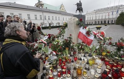 代行總統(tǒng)職權(quán)的波蘭眾議院議長(zhǎng)科莫羅夫斯基10日宣布舉行為期一周的“全國(guó)哀悼日”,悼念當(dāng)天在飛機(jī)失事中遇難的波蘭總統(tǒng)卡欽斯基及其隨行人員。俄羅斯總統(tǒng)梅德韋杰夫10日也宣布4月12日為俄羅斯的全國(guó)哀悼日。