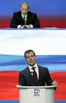 梅德韋杰夫在推舉他成為總統候選人會議代表投票后的統一俄羅斯黨會議上發(fā)言時說:“現在俄羅斯存在的這種機會是百年一遇才降臨到我們這個強大復雜的國家的!