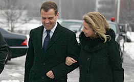 梅德韋杰夫在俄總統(tǒng)選舉中以64.54%得票率領(lǐng)先