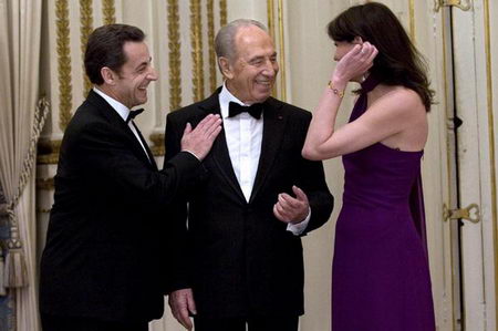 佩雷斯正在對法國進行為期五天的國事訪問,他是薩科齊當選總統(tǒng)并和布呂尼結婚后接待的首位外國元首。佩雷斯在愛麗舍宮首次見到了布呂尼。國宴活動還邀請了2百位貴賓。