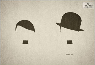 據(jù)英國媒體報(bào)道,在Hut Weber公司的這則廣告中,喜劇演員卓別林的圓頂禮帽下是希特勒標(biāo)志性的頭發(fā)和胡須。下方,一行英文寫道:“這就是帽子!