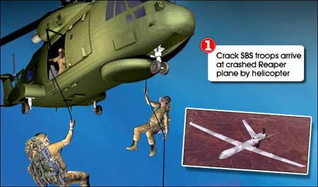 據(jù)報(bào)道,這架“死神”無(wú)人駕駛偵察機(jī)在此前執(zhí)行一項(xiàng)特別任務(wù)時(shí)墜落。英國(guó)皇家特種舟艇部隊(duì)(SBS)派出人員,乘直升機(jī)降落在偵察機(jī)墜落地點(diǎn)附近,將包括相機(jī)和電腦存儲(chǔ)器在內(nèi)的一些高機(jī)密儀器取走。