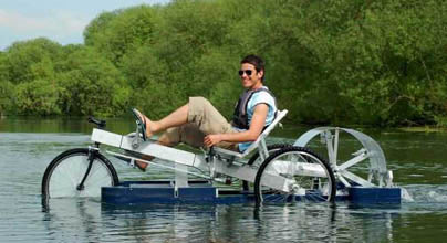 這款水陸兩棲三輪車是南安普敦大學(xué)7名學(xué)生的畢業(yè)設(shè)計作品,從2007年10月就開始研制,共計用時8個月。這些學(xué)生來自不同的專業(yè),包括船舶科學(xué)、建筑和機(jī)械工程等。日前,機(jī)械工程學(xué)院的學(xué)生戴維·愛德華在離航行俱樂部不遠(yuǎn)的易沁河里試著駕駛了這輛三輪車。