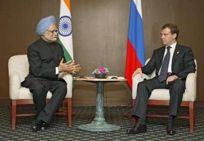 俄羅斯總統(tǒng)德梅德韋杰夫與印度總理曼莫漢·辛格在日本舉行會(huì)晤。