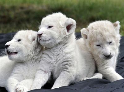 三只小白獅出生后被母獅遺棄