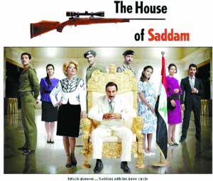 一位很像富人的男人坐在黃金椅座上,周圍是他衣著雍容的家人——這一幕在美國電視劇中并不少見,但這次的主角可不是常人,他是薩達姆。