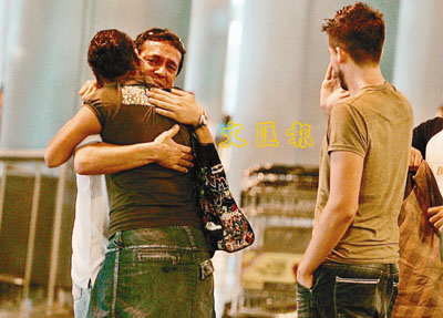 空難乘客的家屬在機(jī)場(chǎng)互擁,情緒難控。
