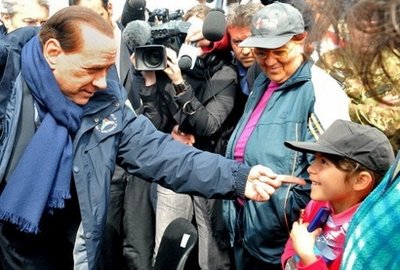 意大利總理貝盧斯科尼當(dāng)天抵達(dá)拉奎拉一所大學(xué),參加一個(gè)集會(huì)。他重申政府援建拉奎拉的承諾。