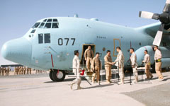 日本航空自衛(wèi)隊的C130運輸機機組成員完成在伊拉克的最后一次運輸任務。攝于12日。(共同社)