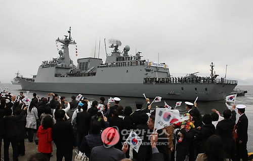 中新網(wǎng)3月13日電 據(jù)韓聯(lián)社報(bào)道,韓國(guó)“青海部隊(duì)”13日啟程前往索馬里海域。該部隊(duì)第一艘派兵艦艇——韓式驅(qū)逐艦(KDX-Ⅱ)“文武大王艦”,當(dāng)天上午在鎮(zhèn)海軍港舉行了出港及歡送儀式。