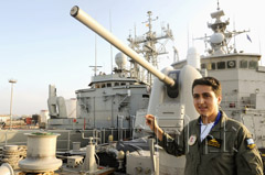 本次公開的是歐盟多國艦隊的旗艦、希臘的“普薩拉”號護衛(wèi)艦。希臘海軍的有關人士向記者介紹了艦橋及艦載直升機。