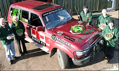 參加這次活動(dòng)的冒險(xiǎn)家,工程師安迪·佩格和電工約翰·格雷姆肖希望借此行提高人們對可以減少碳排放量的可再生性生物能源的認(rèn)識。