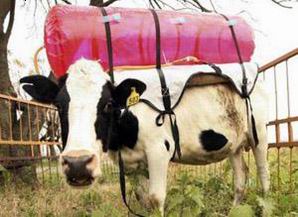 中新網(wǎng)7月10日電 據(jù)科學家指出,牛羊等反芻動物通過打嗝和放屁的方式排放大量的甲烷,造成了巨大的污染。據(jù)英國《每日郵報》9日報道,阿根廷科學家在牛背上綁上一個塑料罐,專門收集牛打嗝和放屁排出的廢氣,供研究之用。