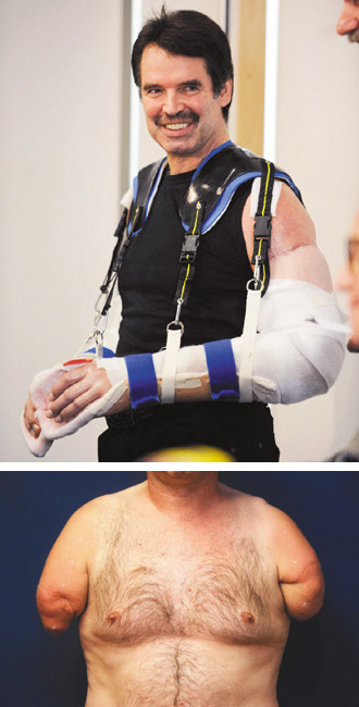 默克展示自己的雙臂高興地說,難以形容再度完整的感覺:“我的機(jī)動(dòng)性每天不斷增加”。默克的療程仍在持續(xù)進(jìn)行,雙臂目前用一件特殊的“緊身衣”支撐著。