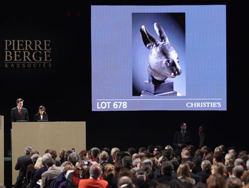 北京時間2月26日凌晨兩點,佳士得拍賣行現(xiàn)代藝術(shù)和印象派作者的負責(zé)人托馬斯-賽多克斯(Thomas Seydoux)以2800萬歐元拍得圓明園文物鼠首和兔首銅像。