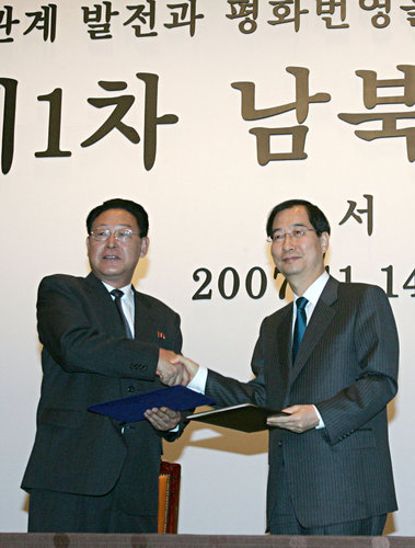 中新網(wǎng)11月16日電 綜合韓聯(lián)社報道,朝韓總理會談雙方代表團在16日上午舉行的總結(jié)會議上通過了一項《關(guān)于履行“旨在發(fā)展朝韓關(guān)系及和平繁榮的宣言”的第一次朝韓總理會談協(xié)議》(含八條共49項)和2項附加協(xié)議。