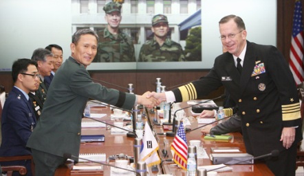 中新網(wǎng)11月6日電 韓聯(lián)社消息,韓國聯(lián)合參謀總長金寬鎮(zhèn)和美國參謀總長邁克爾·馬倫(海軍上將)6日上午在首爾龍山區(qū)國防大樓舉行第29次韓美軍事委員會(MCM),集中討論了兩國軍事領域里懸而未決的問題。