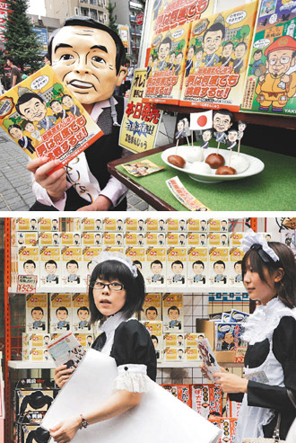 秋葉原以大型電器產(chǎn)品販賣店聞名,現(xiàn)在成為“御宅族”最佳聚集點(diǎn)。商店販賣最新出版的漫畫與卡通DVD,女侍應(yīng)生扮成當(dāng)紅電玩游戲中的各種人物。其中一個(gè)店面展售綴有麻生與福田卡通畫像的蛋糕與餅干。店長黑相宣一表示:“福田康夫宣布辭職后不久,以他為主題的商品銷路很好,與麻生有關(guān)的商品賣得更好。我們會(huì)將與麻生有關(guān)的商品擺在最顯眼的展售位置,因?yàn)樗亲钍懿毮咳诉x!