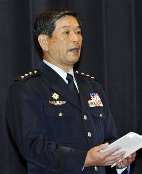日本新上任的的航空幕僚長外薗健一發(fā)表演說。