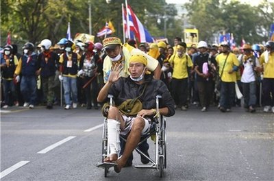 曼谷大眾運輸系統(tǒng)管理局的營運副主管說,人民民主聯(lián)盟的支持者當(dāng)天上午偷了四輛巴士,用來封鎖政府機(jī)關(guān)。他說:“抗議群眾持棍棒上了巴士,要求乘客下車。他們只留下司機(jī),控制了這幾輛巴士。”