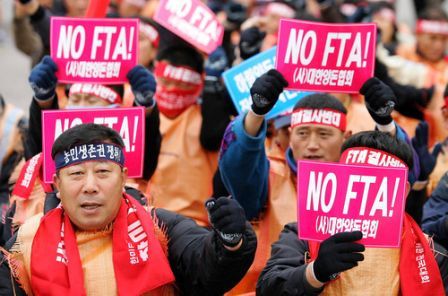 中新網(wǎng)11月26日電 據(jù)星島環(huán)球網(wǎng)報(bào)道,近萬名韓國農(nóng)民25日在首爾示威,要求國會否決韓美自由貿(mào)易協(xié)定。韓國民間團(tuán)體此前也舉行過多場示威,抗議韓國政府進(jìn)口美國牛肉,但總統(tǒng)李明博態(tài)度強(qiáng)硬,民眾未能如愿。