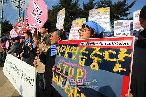 在光州,30多名6.15共同委員會光州全南本部成員,在全南道舊政府大樓前舉行記者會表示:“目前韓半島處于高度緊張狀態(tài),應(yīng)停止大規(guī)模的戰(zhàn)爭演習(xí)!
