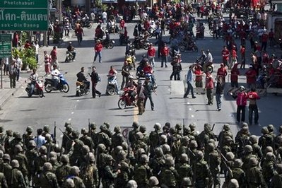 泰國總理阿披實(shí)13日夜對媒體稱,在同反政府示威者進(jìn)行一天的爭斗后,軍隊已經(jīng)控制住首都曼谷的局勢。阿披實(shí)說,人們有權(quán)舉行和平示威,但不是暴亂。他說,“我們相信,我們已經(jīng)控制住局勢!